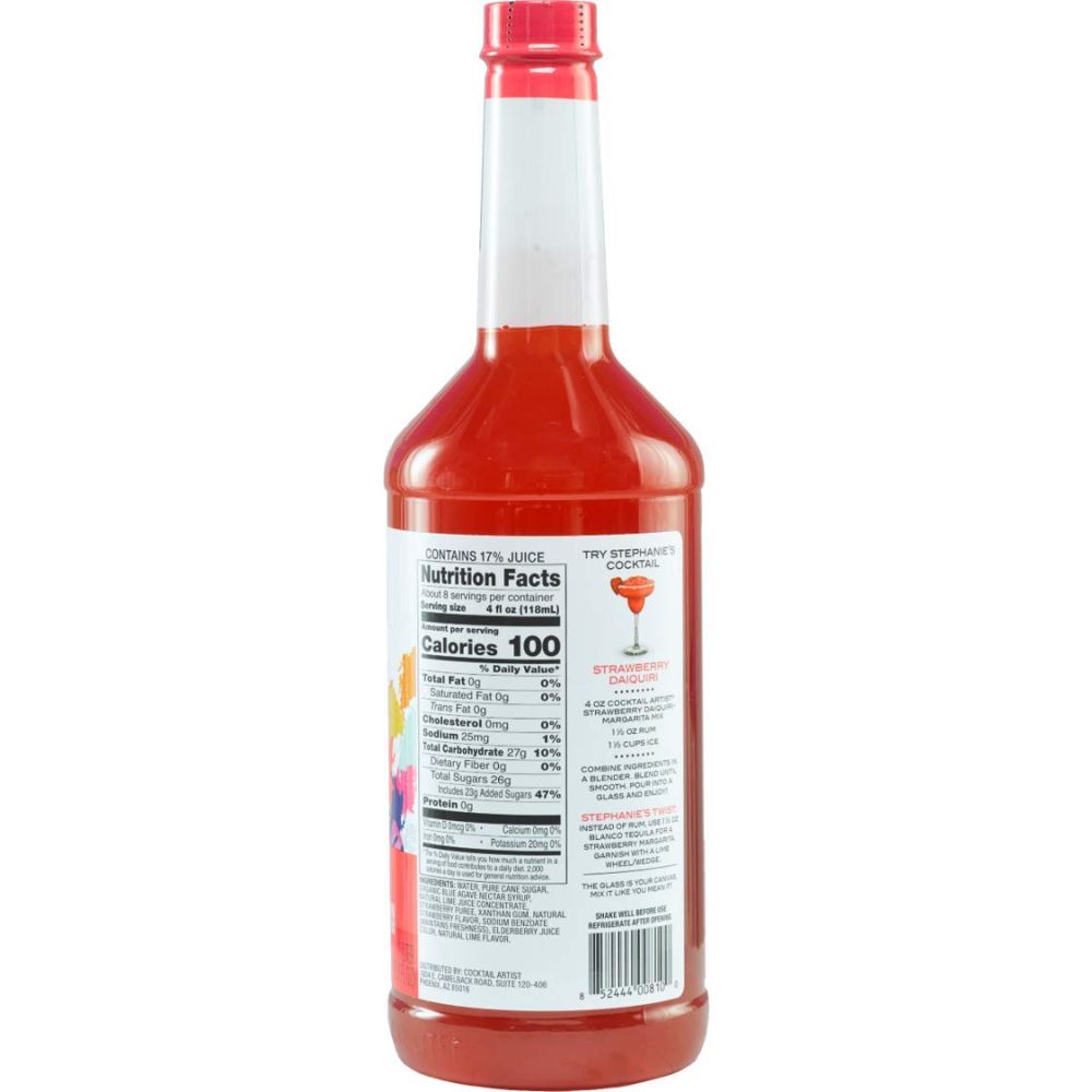 Cocktail Artist® Award-Winning Premium Strawberry Daiquiri & Margarita Mix is a sweet and versatile staple for your home bar. Made with strawberry juice, lime juice, pure cane sugar, and organic blue agave nectar (never high fructose corn syrup), this mix doubles as a base for daiquiris and strawberry margaritas.