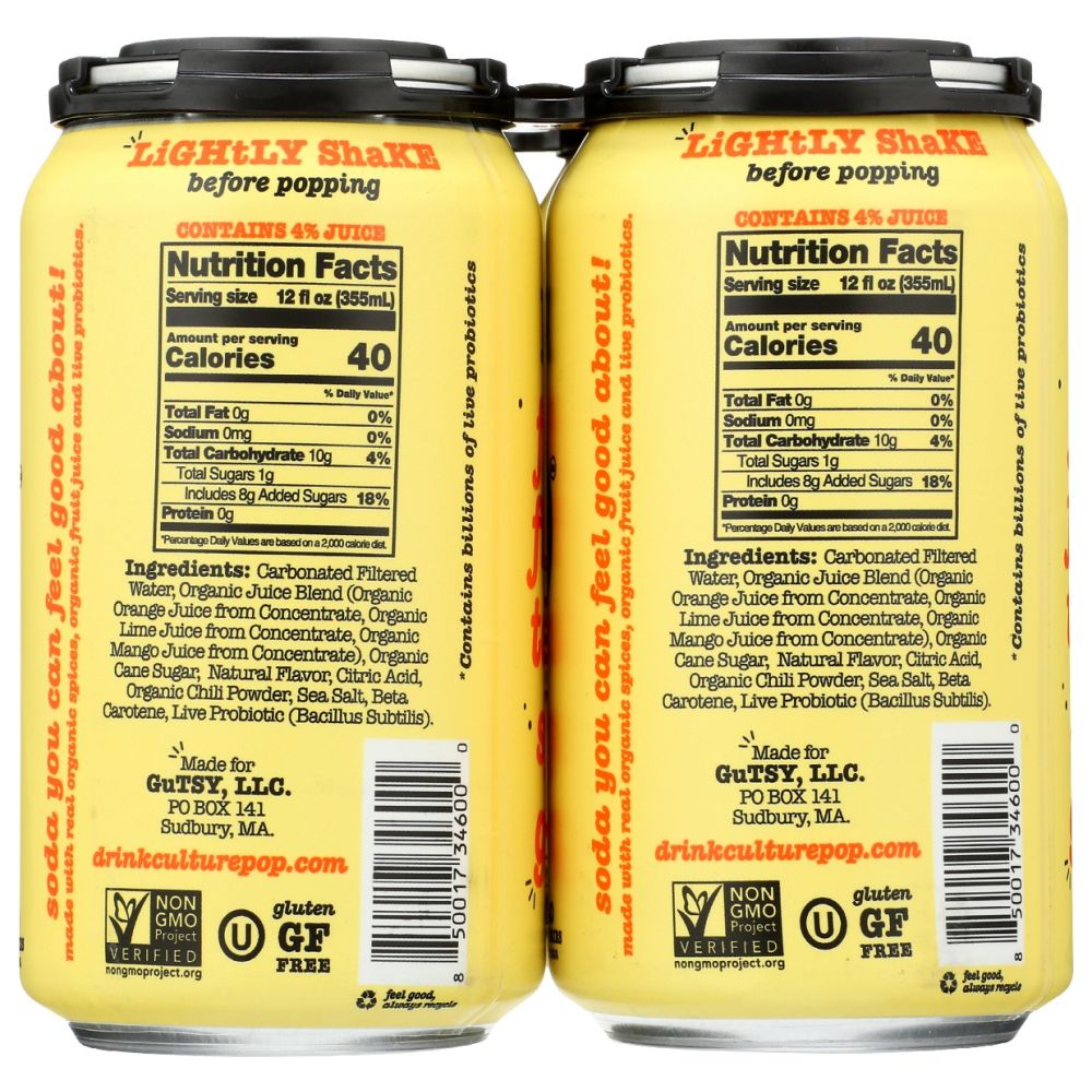 CULTURE POP: Soda Probiotic Orange Mango 4Pk, 48 fo